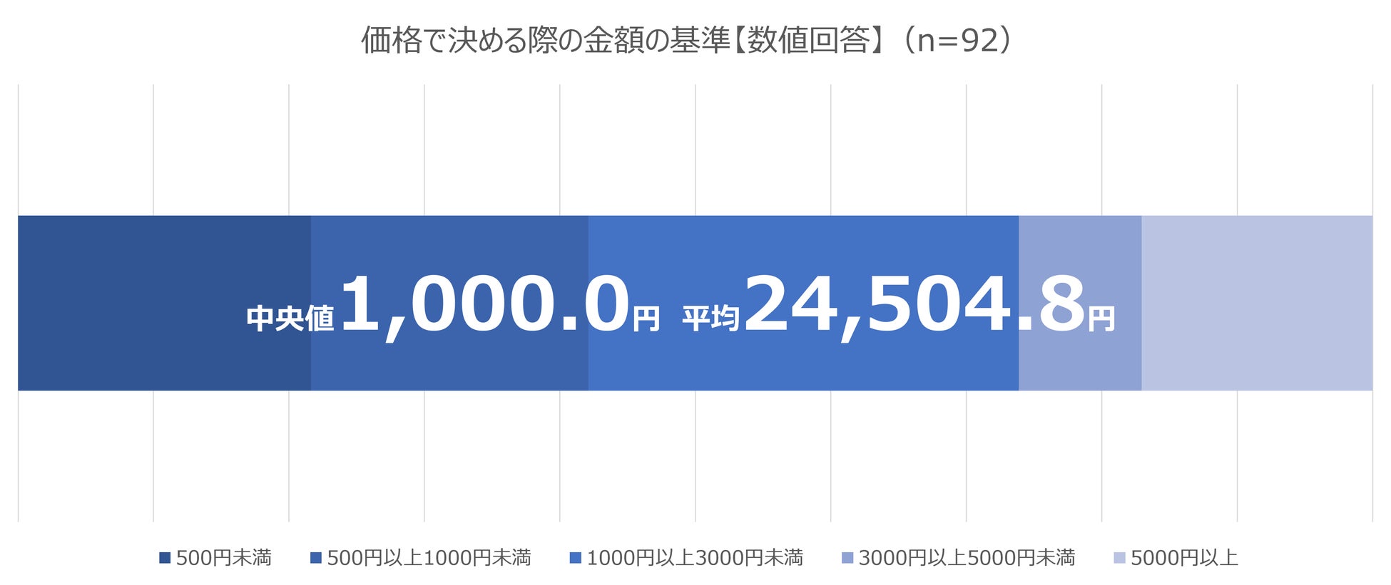価格を基準に何円以上の商品であれば店舗で買いたいと思うか聞いたところ、中央値1,000円/平均値24,504.8円となりました。全価格帯で一定の回答があり、価格基準での店舗購入はそれぞれの価値観によって変動することが推察できます。