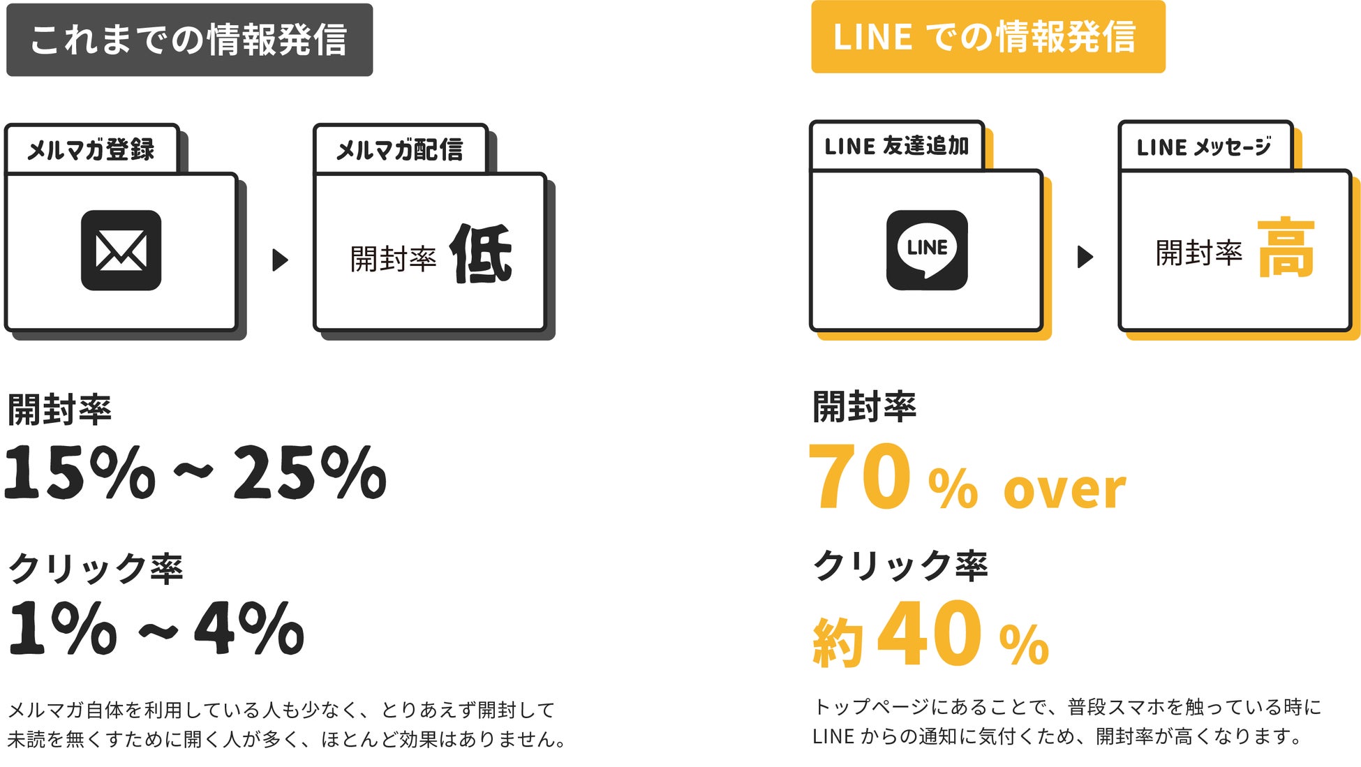 LINEを始め、様々な交流手段がスマートフォンアプリに登場した結果とも言えるこの状況では、新規でメールアドレスを獲得しても、配信したクリエイティブやセールスに関しては見られることもなく埋もれていく一方です。