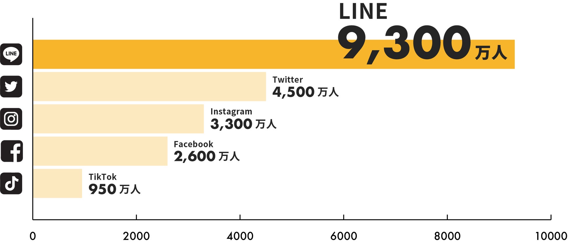 日本国内での連絡手段の中心と言えば「LINE」です。月間利用者数9,300万人が利用しているLINEを