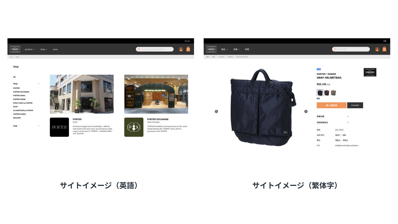 吉田カバンは、1935年の創業以来、日本製にこだわりカバンを作り続けています。また、日本国外への出店や世界各国のブランドとのコラボレーションにより、海外のお客様からの購入も増加傾向となっています。こうしたなか、吉田カバンが運営する EC サイトでは多言語化をスピーディーに行い、EC サイト内の情報を母国語で読めるようにすることで、より多くのお客様にブランドのアイデンティティや品質を正しく理解いただき購入してもらいたいというニーズが高まってきていました。そこで、英語のほか、特に店舗利用者の多い台湾のお客様に母国語で情報を届けるべく、EC サイトを繁体字でも表示できるよう検討を進めました。