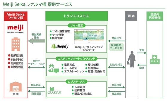 トランスコスモス株式会社(代表取締役共同社長:石見浩一、牟田正明)は、Meiji Seika ファルマ株式会社(本社:東京都中央区、代表取締役社長:小林大吉郎、以下、Meiji Seika ファルマ様)のECプラットフォームを構築しました。Shopify(ショッピファイ)を活用し、ECサイトの運営、販売管理、ロジスティクス、カスタマーサポートをワンストップで提供し、Meiji Seika ファルマ様の初の試みであるD2C事業を全面支援しました。