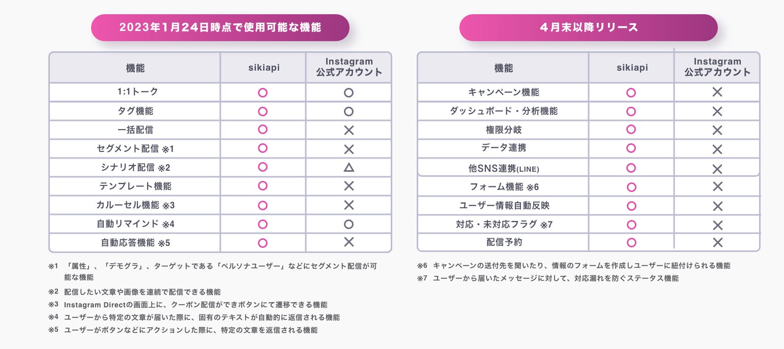 ■sikiapiの機能|Instagramビジネスアカウントとの比較
