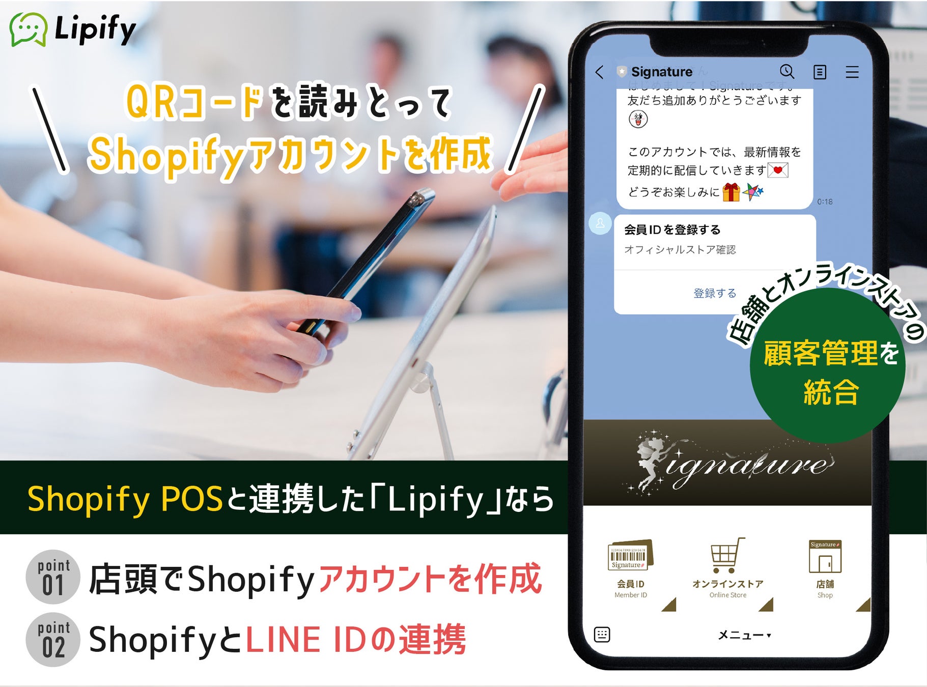ShopifyとLINE連携するためのツール『Lipify(リピファイ)』(株式会社カシミラ、本社:東京都渋谷区、代表取締役:田中 希育)は、Shopify POSと連携できる新機能を提供開始いたしました。これにより、顧客が店頭にてQRコードを読み込めば、LINE上でオンラインストアと店舗共通の会員IDを発行し、Shopify POSでスキャンすることができるようになりました。