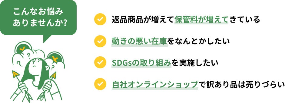 事業系・供給側となるブランドやメーカーもそういった問題の解決、持続可能な社会を目指すためSDGsへの取り組みが活発になってきていますが、サンプル品やB品、在庫の滞留、流通過程でのダメージなど、商売を行う上でどうしても発生してしまう商品を0には出来ないのも事実です。同時に、ブランディングが重要とされる市場で、「訳あり品を大々的に販売することでブランドのイメージを悪化させるのではないか?」というビジネス側の心配も当然あります。