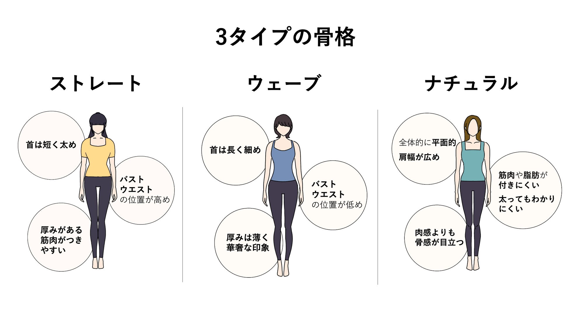 • 自身のコンプレックスと骨格診断の結果を組み合わせることで、まだ気づいていない潜在的なお悩みの原因である体型の特徴を診断してくれる