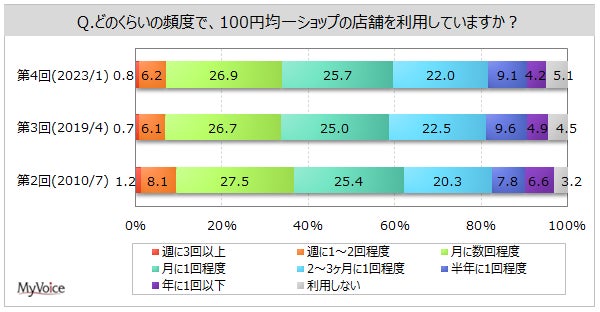 マイボイスコム株式会社(東京都千代田区、代表取締役社長:高井和久)は、4回目となる『100円ショップの利用』に関するインターネット調査を2023年1月1日~5日に実施しました。調査結果をお知らせします。