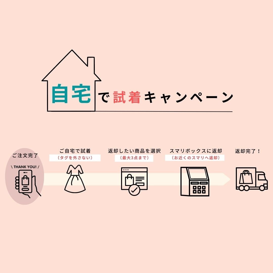本キャンペーンでは損害保険ジャパン株式会社の提供する「かんたんであんしんな返品サービスReturn+(リターンぷらす)」を活用します。試着後に返品したい場合には、EC商品、レンタル商品の発送・返品・返却サービスの「SMARI(スマリ)」を使い、ローソン店舗や提携事業者に設置された端末で簡単に返品することが可能です。そして、気軽に試着をしていただくために、返品料、返品送料を無料にしました。