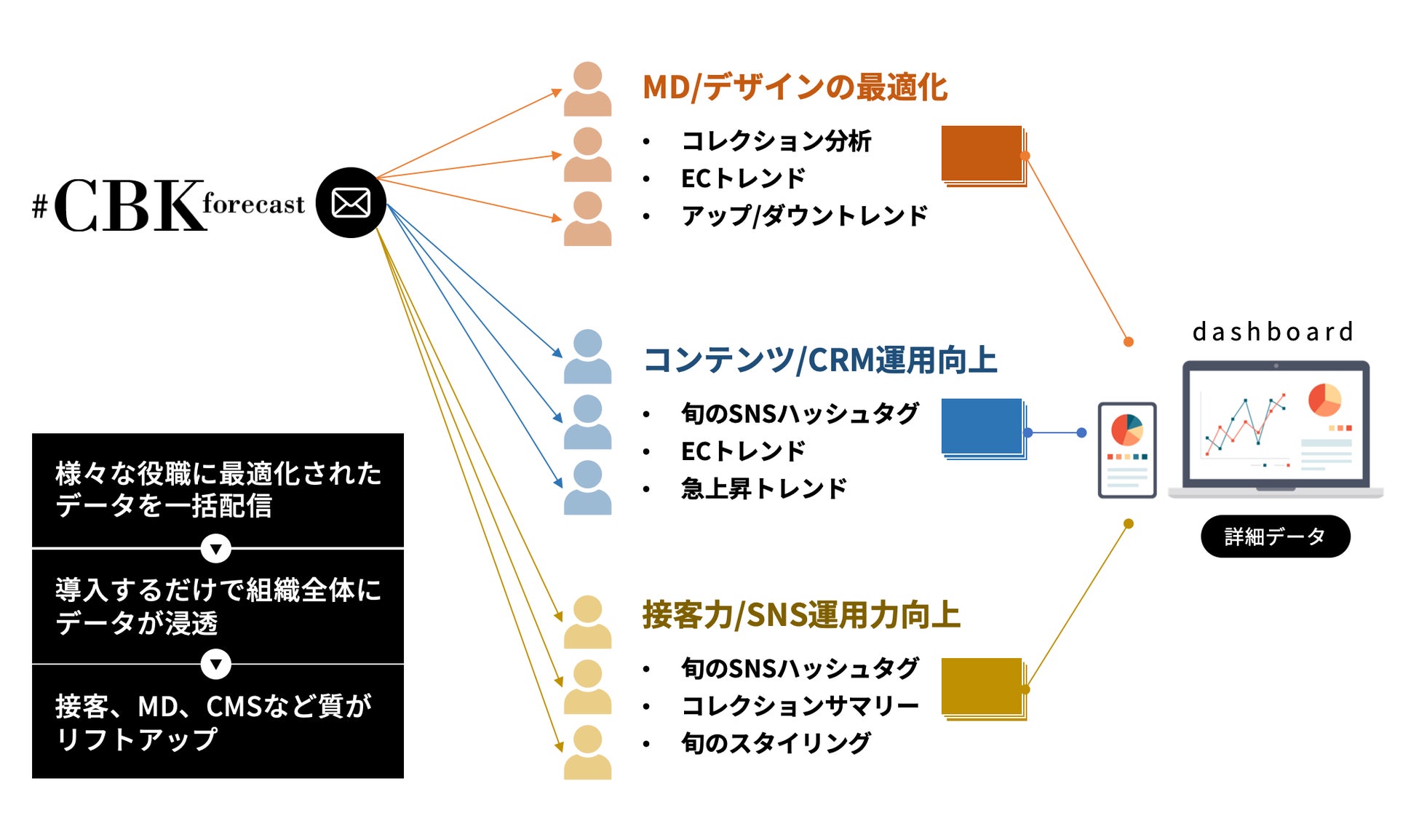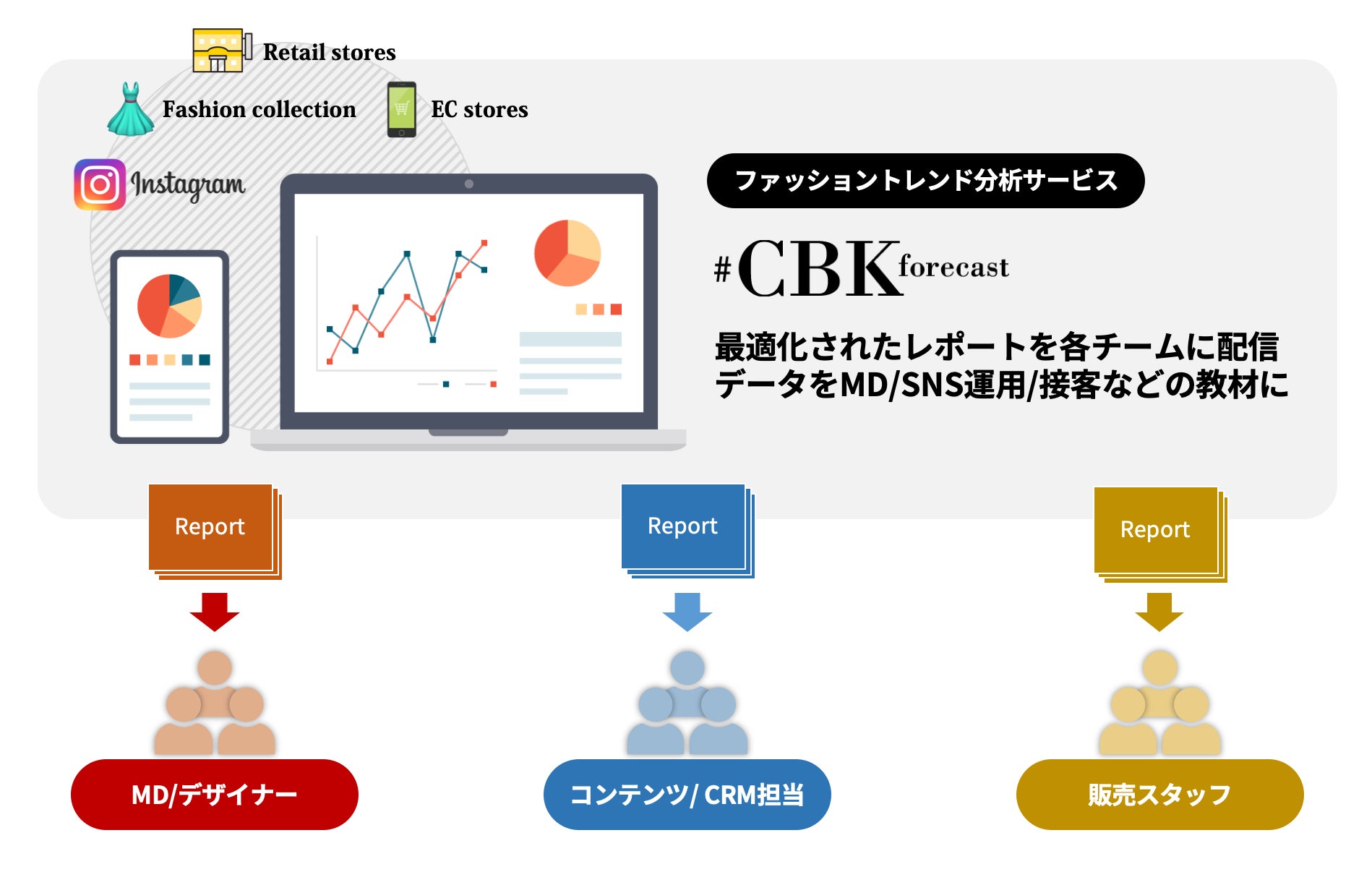 MD、SNS担当、販売スタッフなど、必要十分な情報量を受け取ることで、商品構成、SNS運用、接客などの業務に活用することができます。