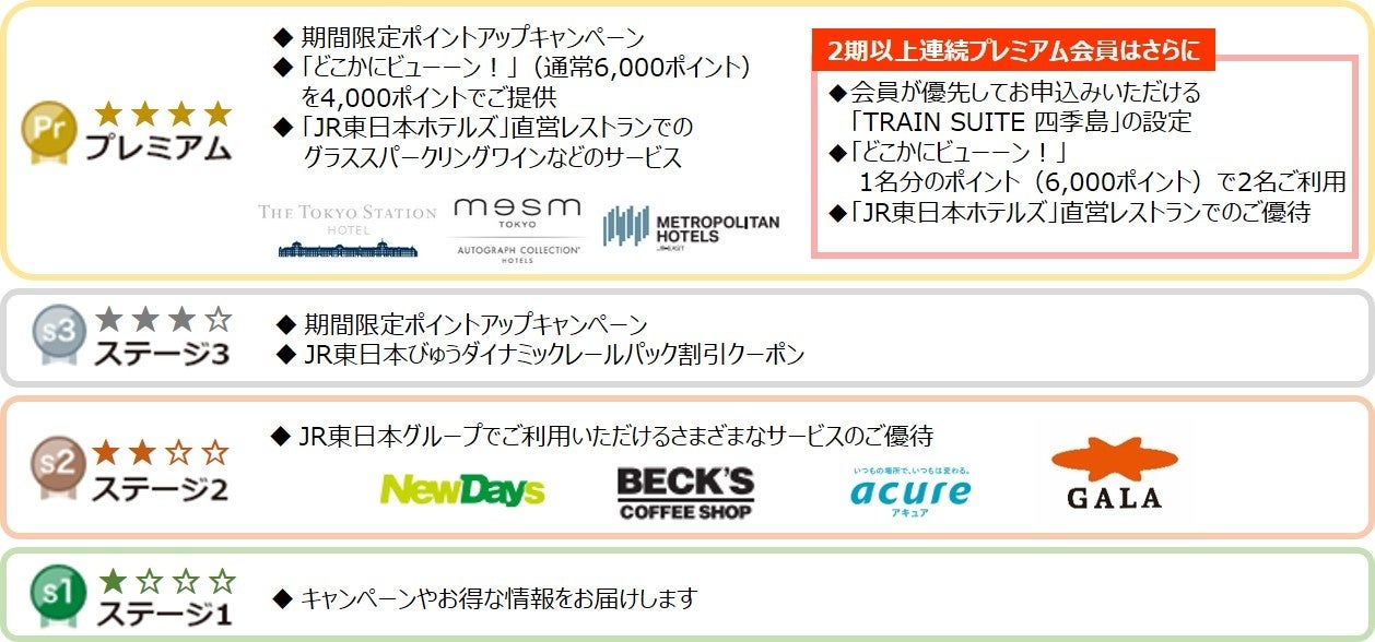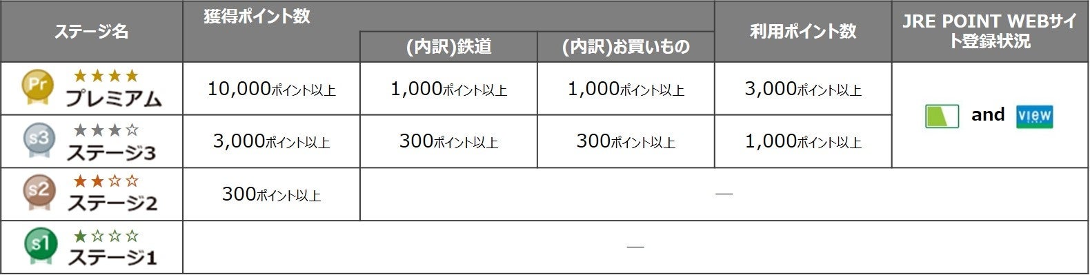 ※ステージ3とプレミアムは、JRE POINT WEBサイトへのSuicaとビューカードの登録が必要です。