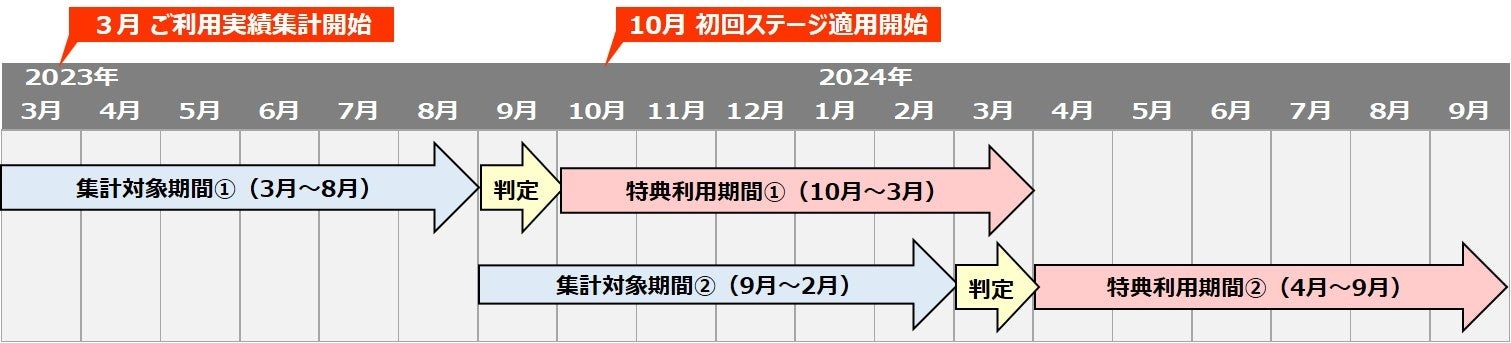 ※毎年3月~8月のご利用実績により10月~3月のステージを、9月~2月のご利用実績により4月~9月のステージをそれぞれ決定します。