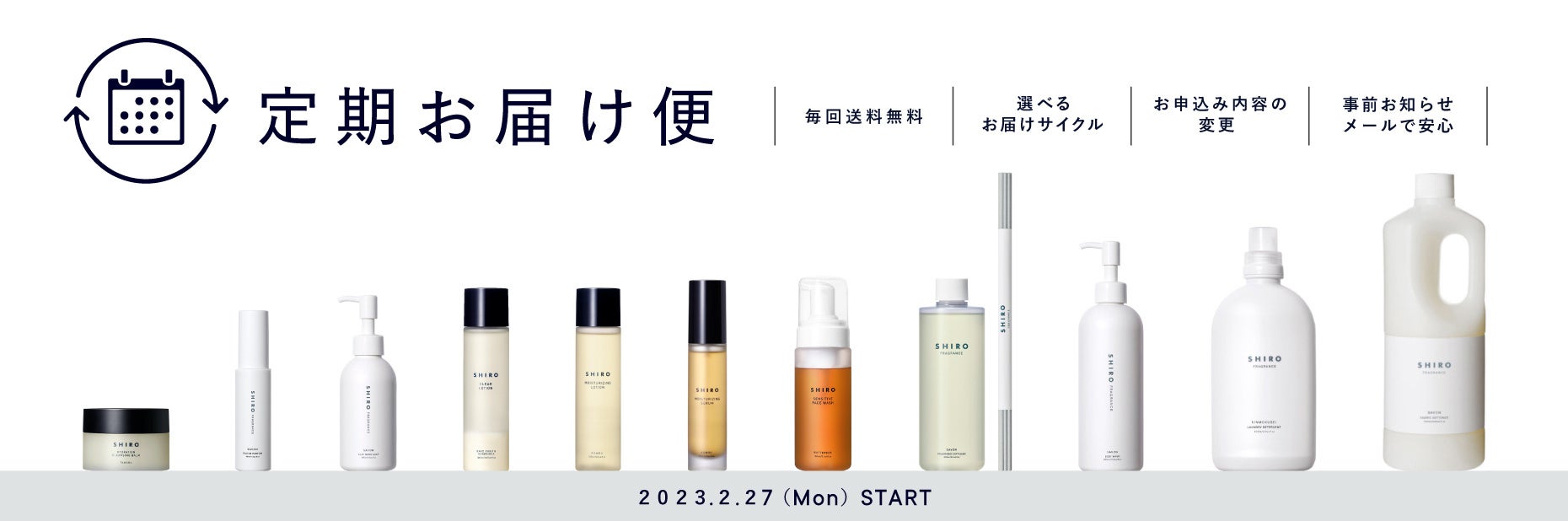 このたび、2023/2/27(月) よりSHIROオンラインストアにて (https://shiro-shiro.jp) スキンケアやフレグランス製品の定期購入ができる「定期お届け便」を開始します。