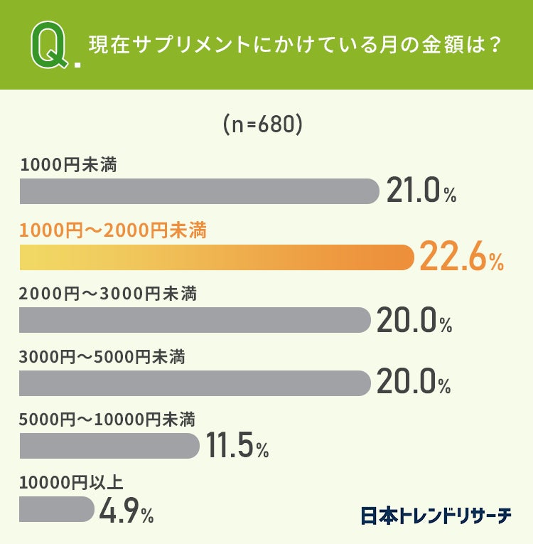 日本トレンドリサーチ(運営会社:株式会社NEXER)は、株式会社ドクターズチョイスと共同で「サプリメントにかけている金額」に関するアンケートを実施し、結果をサイト内にて公開したので紹介します。