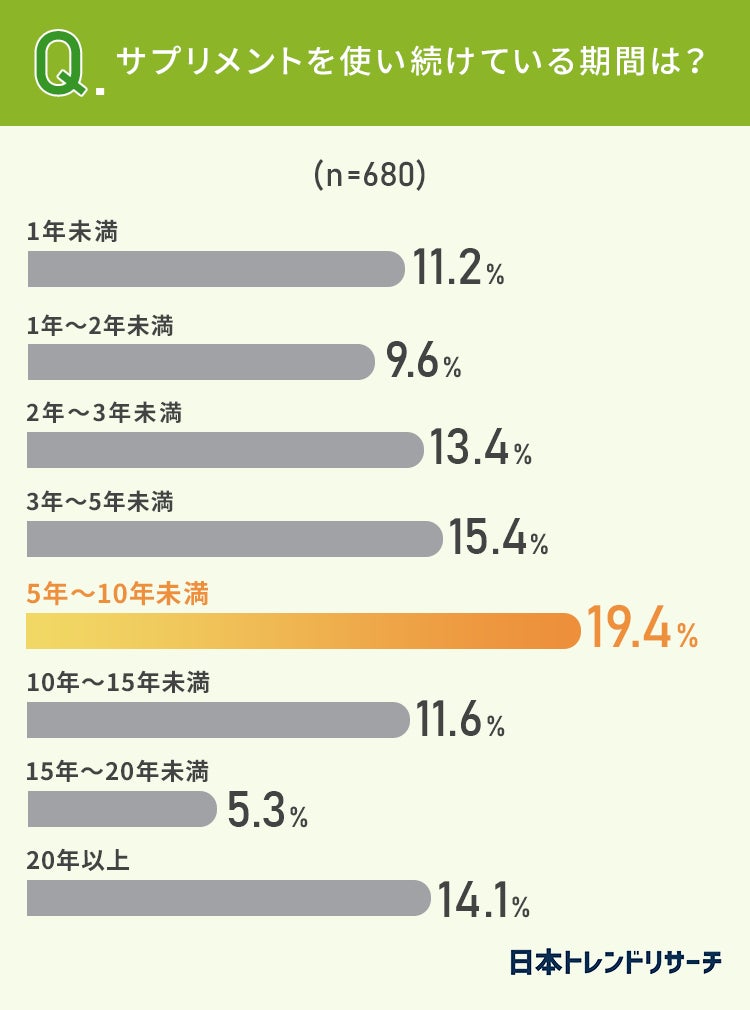 サプリメントを使い始めてから、どれほどの期間が経っているかについても聞きました。