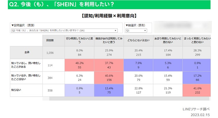 このたびLINEリサーチでは、日本全国の男女を対象に、「SHEIN(シーイン)」の認知率や利用意向などについて調査しましたので、その結果をお知らせいたします。