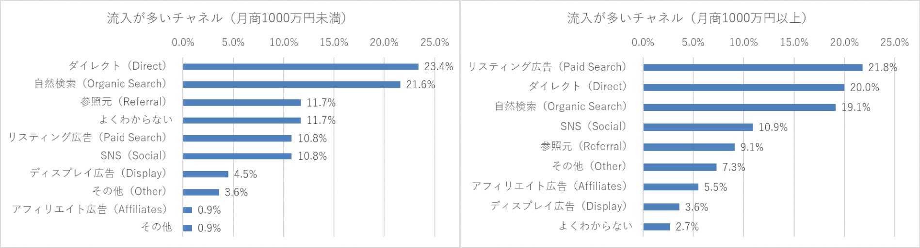 EC上のお客さまの流入経路は、約80%の割合でwebマーケティングに依存しています。お客さまが実際に資料請求や購買に至るコンバージョンは、店舗接客からの流入や、接客スタッフによる直接的なアプローチなどの「ダイレクトチャネル」が、全体の27.3%と、最も多い経路となっています。