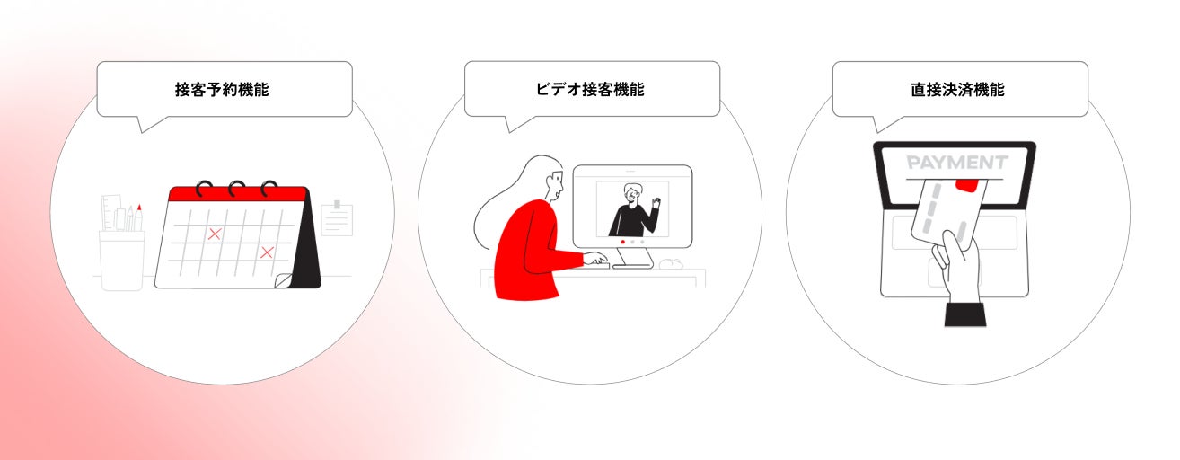 - 主要機能:『ビデオ接客機能』『接客予約機能』『直接決済機能』