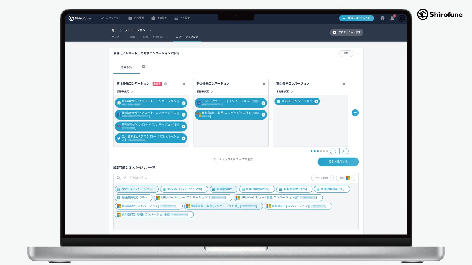 クリック・コンバージョン・収益(コンバージョン値)の中から選んだ成果指標に併せて、入札内容を自動で最適化。優先コンバージョン設定で、より細かくコンバージョン設定をカスタマイズできます。
