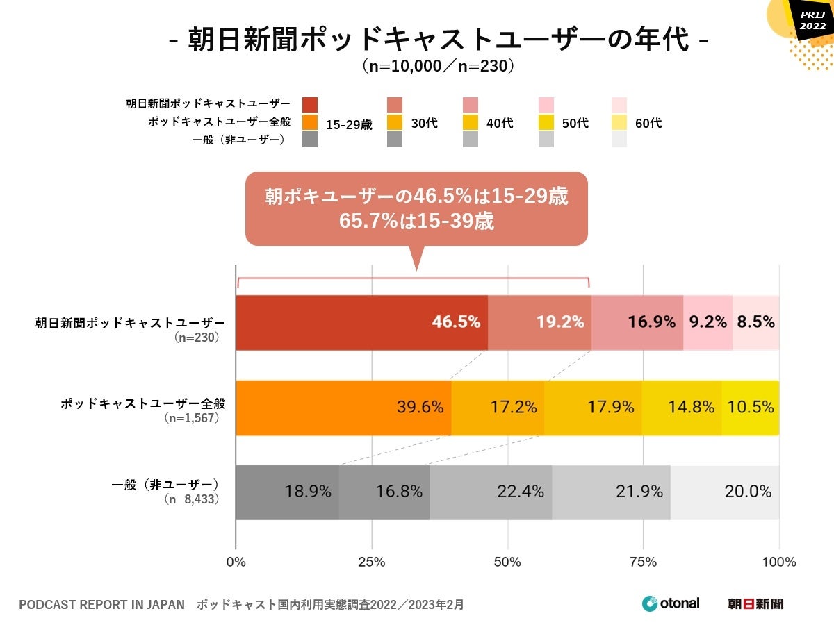 - 朝日新聞ポッドキャスト(朝ポキ)ユーザーの46.5%はZ世代。3分の2は15~39歳。