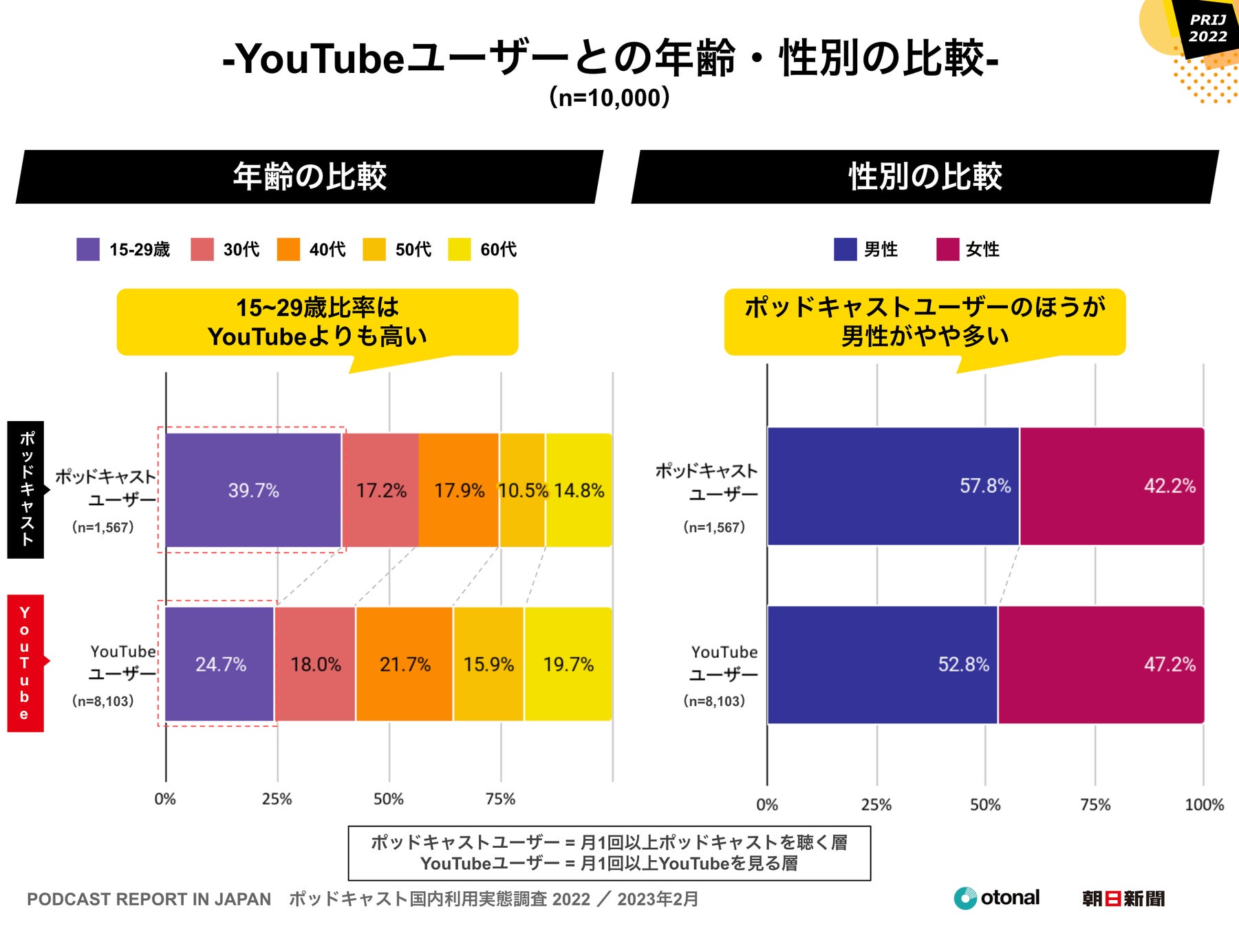 ■YouTubeユーザーよりもポッドキャストユーザーのほうが15〜29歳の若年層率が高い