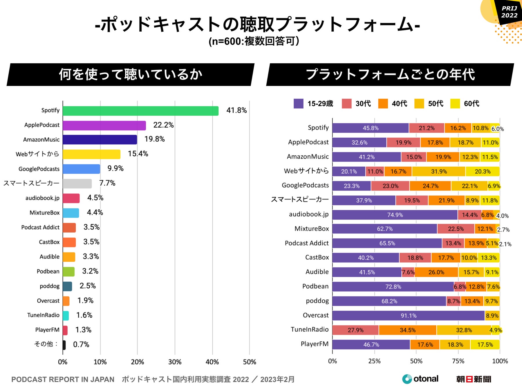 ■ポッドキャストを聴く方法はSpotifyが41.8%でトップに。サービスごとの年代傾向も明らかに
