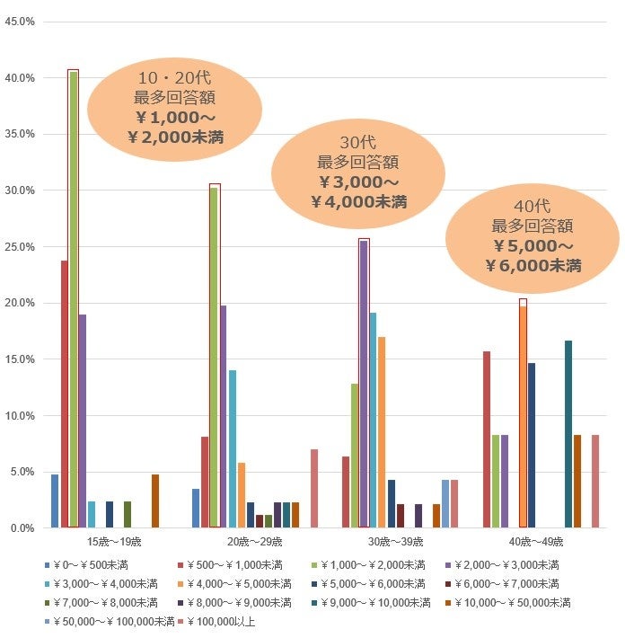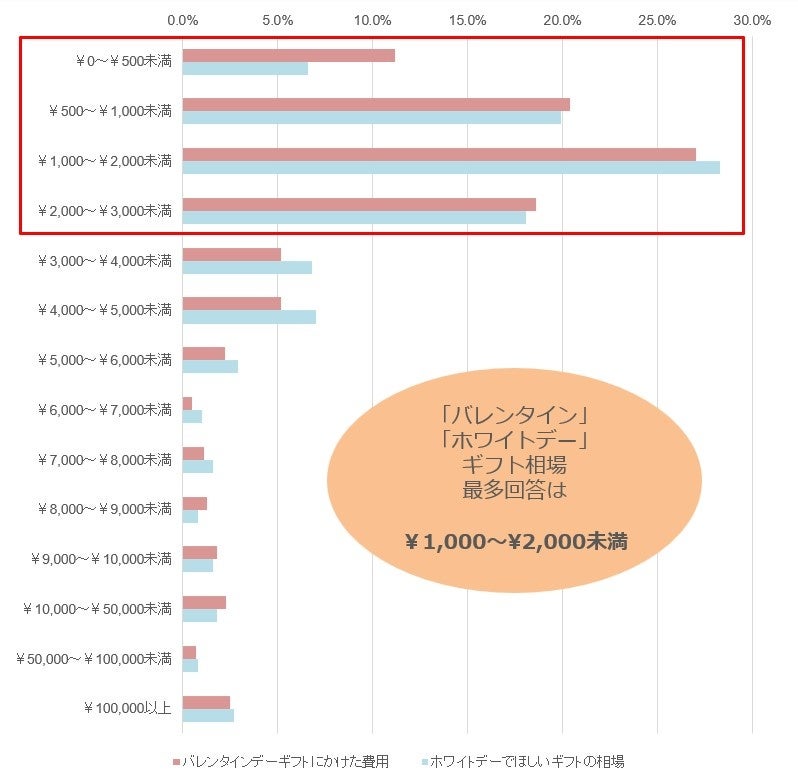 ・今年のバレンタインデーにかけた費用¥1,000~¥2,000未満が最多回答。