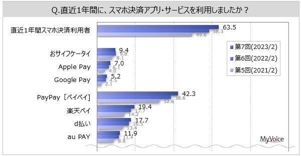 マイボイスコム株式会社(東京都千代田区、代表取締役社長:高井和久)は、7回目となる『モバイル決済』に関するインターネット調査を2023年2月1日~5日に実施しました。調査結果をお知らせします。