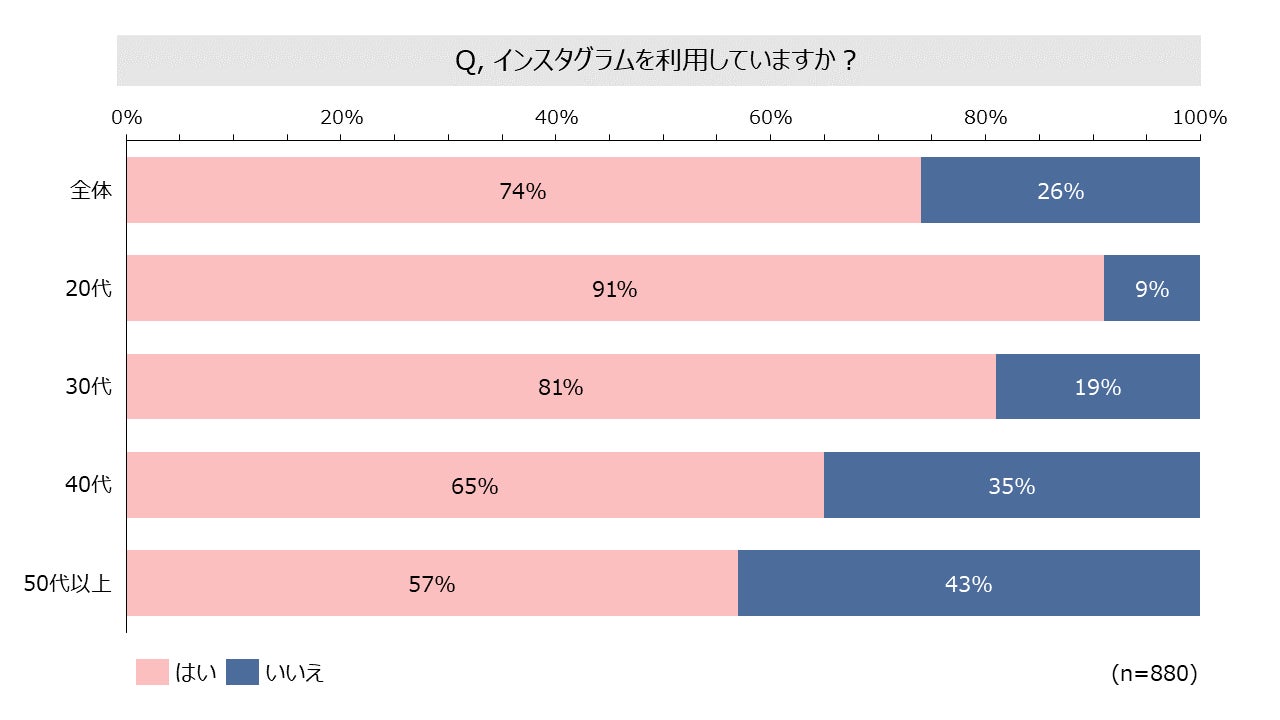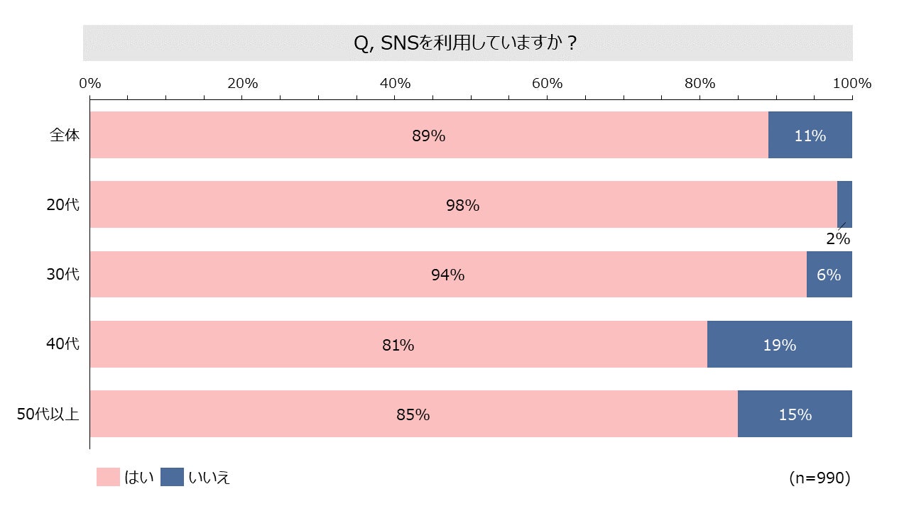 1. SNSを89%が利用、インスタグラムの利用率は74%。20代は90%以上が活用。