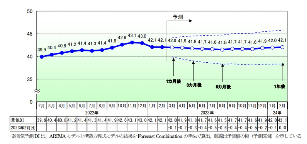 2023年2月の景気DIは前月から横ばいの42.1となった。