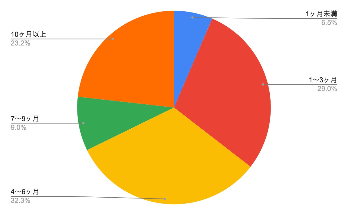 アプリ開発にかかった期間についても尋ねたところ、以下のような結果となりました。