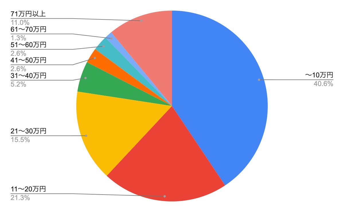 実際にアプリ開発にかかった費用を見ると、300万円以下が最多となりました。