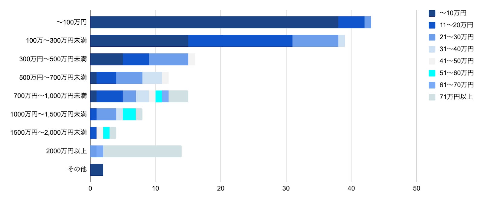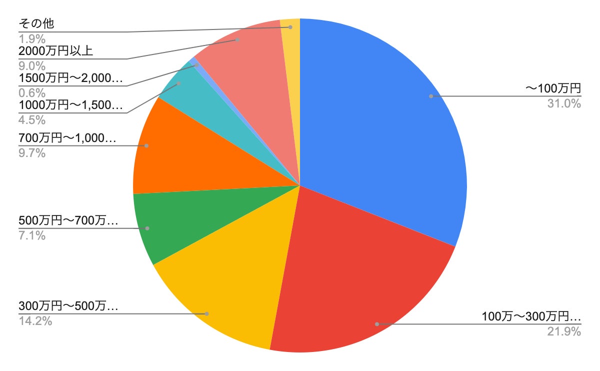 こちらも「2,000万円以上」と回答した人は9%(14名)という結果に。