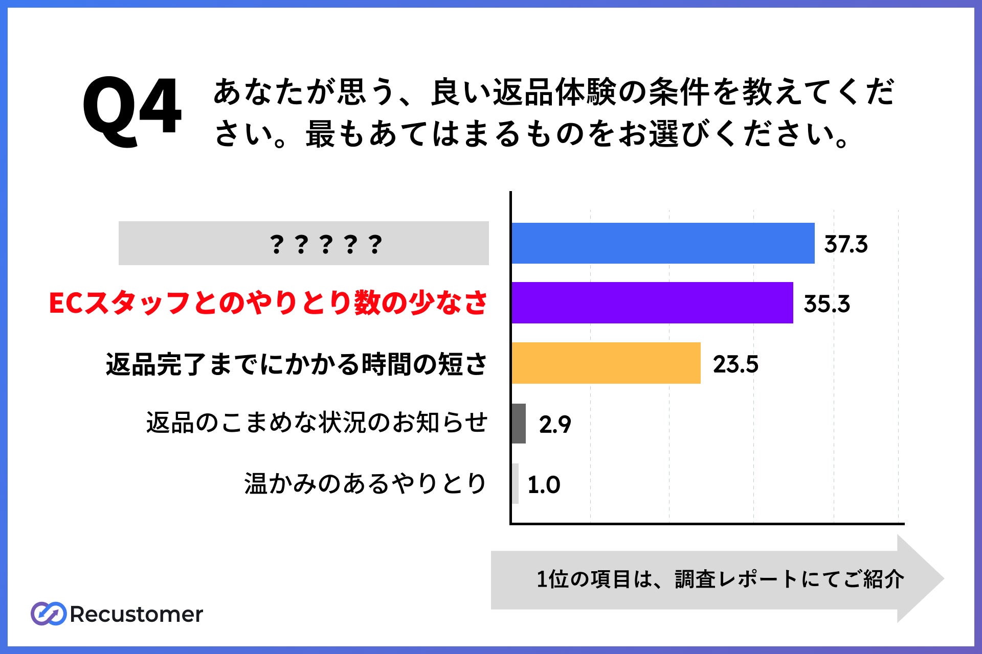 └スタッフのやりとりの少なさ、返品完了までの時間が短いことが、良い返品体験の要素。