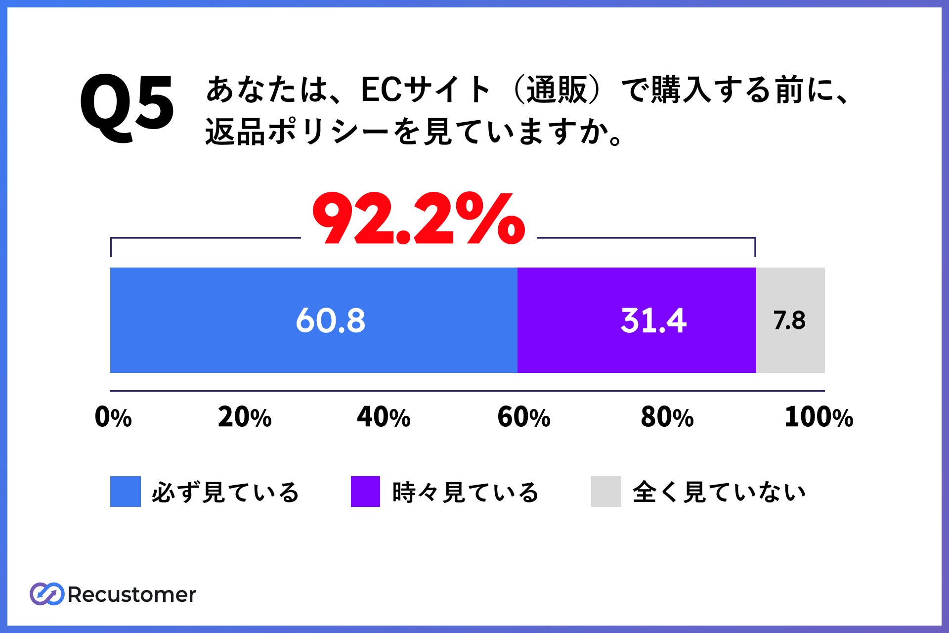 └92.2%がECサイトで購入する前に、返品ポリシーを確認している。また、92.6%は返品ポリシーの内容を見て、購入をやめた経験がある。