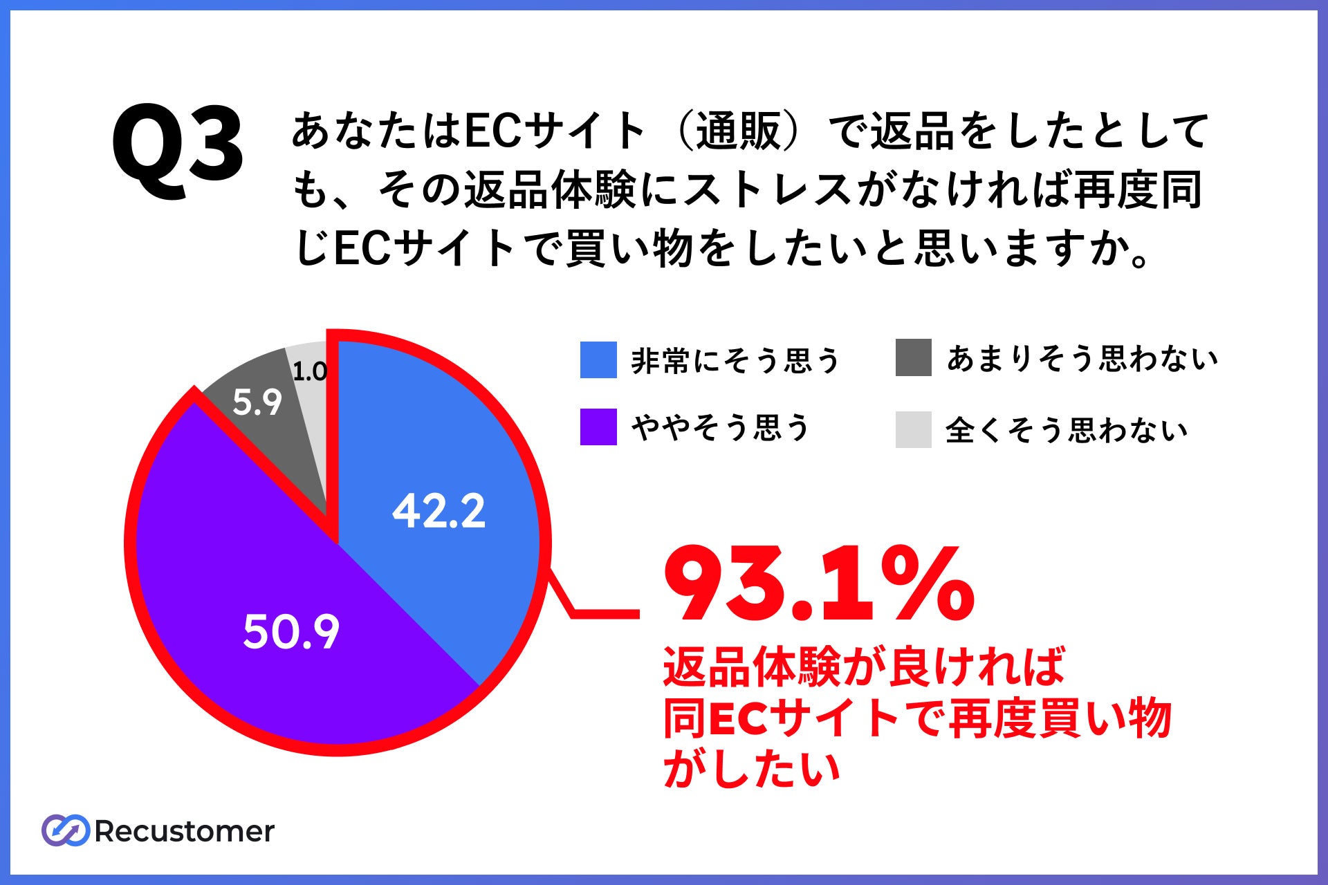 (3)8割以上の消費者はECサイトの返品体験に不満を持っている一方で、93.1%の消費者は「返品をしたとしても、返品体験にストレスがなければ再度ECサイトで買い物をしたい」と回答。