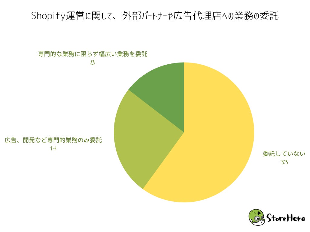 また、以下はShopifyの運営に関しての外部委託状況のグラフです。半数以上の方は外部委託されていません。