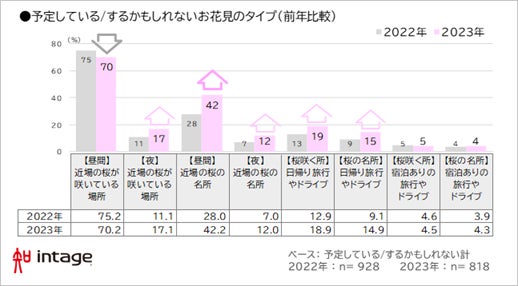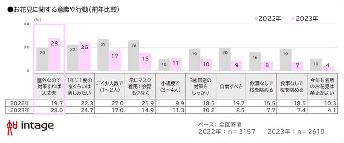 第8波の感染者数も減少傾向にあり、マスク着用も緩和される中、「誰かと一緒にお花見を楽しむ」というマインドや行動が、確実に回復してきていることが感じられる結果と言えそうです。