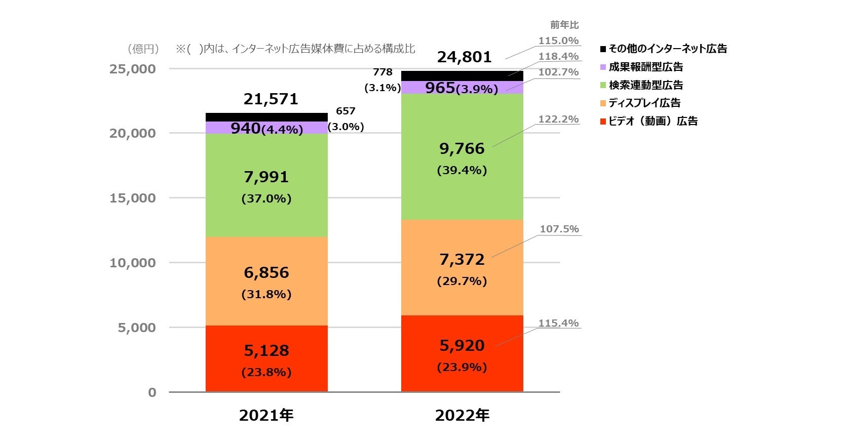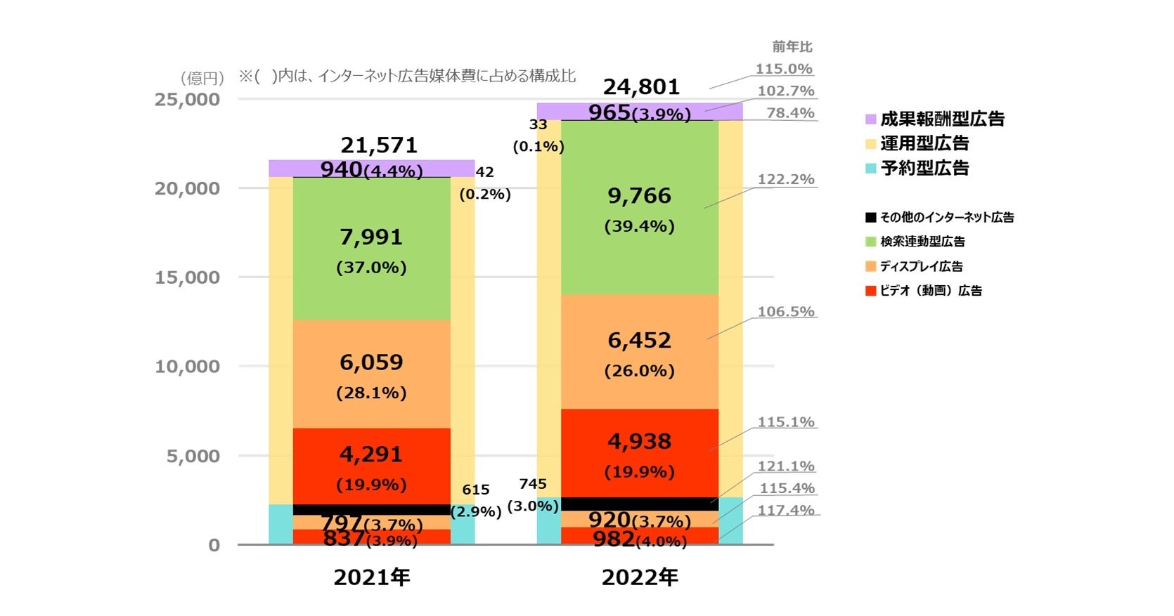 ~検索連動型広告が9,766億円で、前年比122.2%と大きく成長~