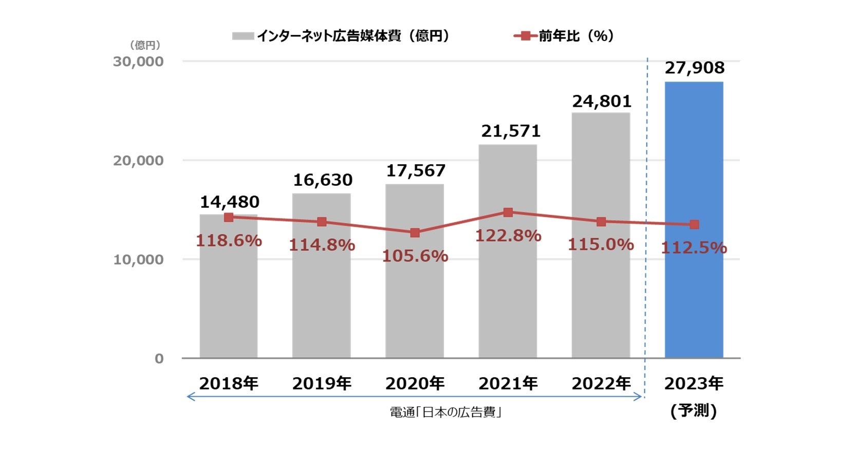 ~2023年のインターネット広告媒体費は、2兆7,908億円まで増加する見込み~