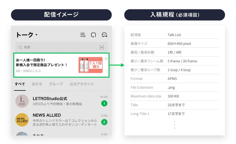 LetroStudioでは、MP4形式の動画クリエイティブをAPNG形式に変換できる機能の提供を開始しました。APNG形式に変換する際、ファイルサイズやフレーム(画像)数、ループ数、秒数等の細かな設定をした上でダウンロードすることができます。また、LINE広告の入稿規定をクリアできているかをチェックする機能も同時リリース。LINEに最適化されたクリエイティブが簡単に制作できるようになりました。