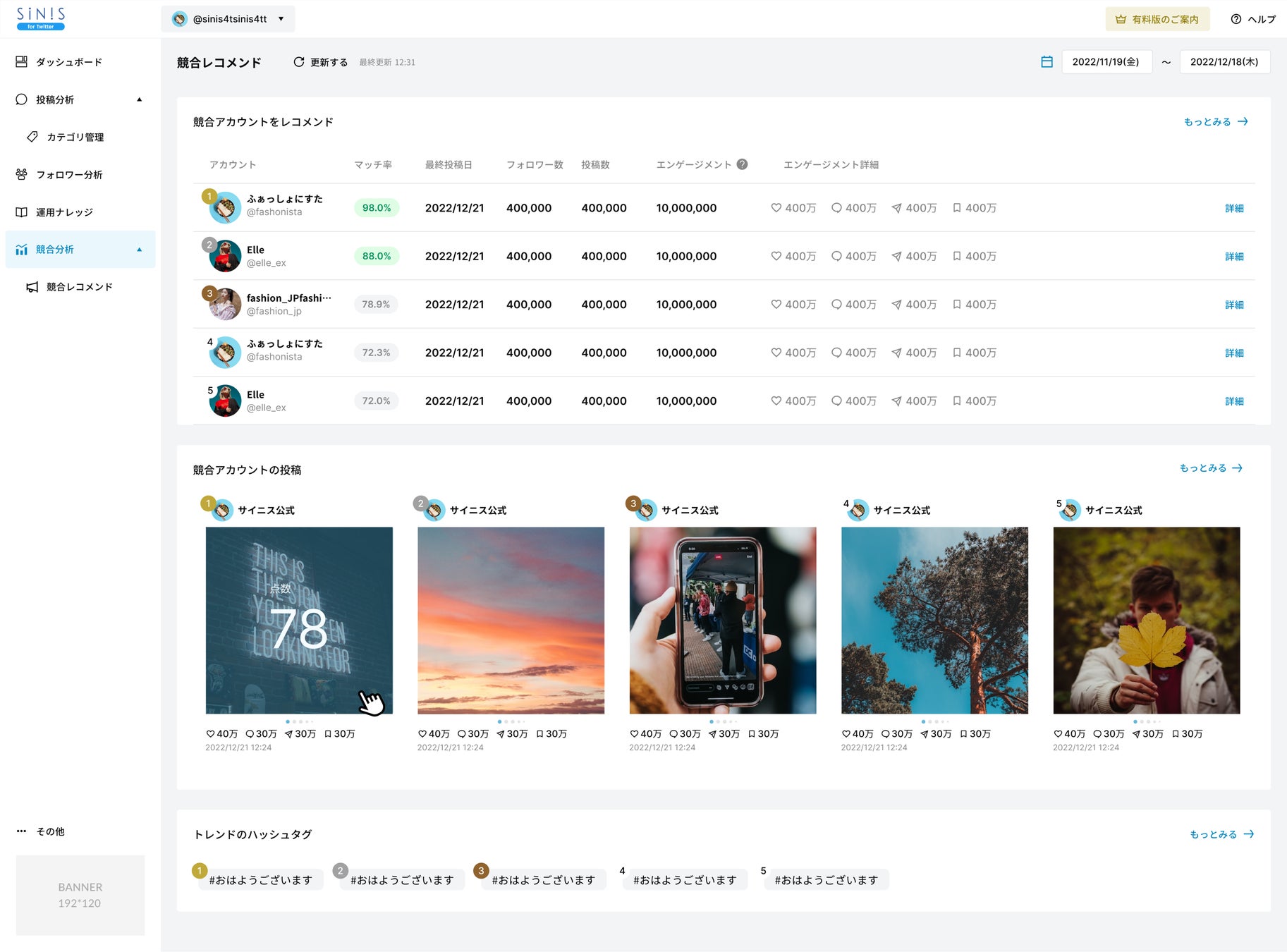 ▲ベンチマークしているアカウントと比較できる競合分析機能