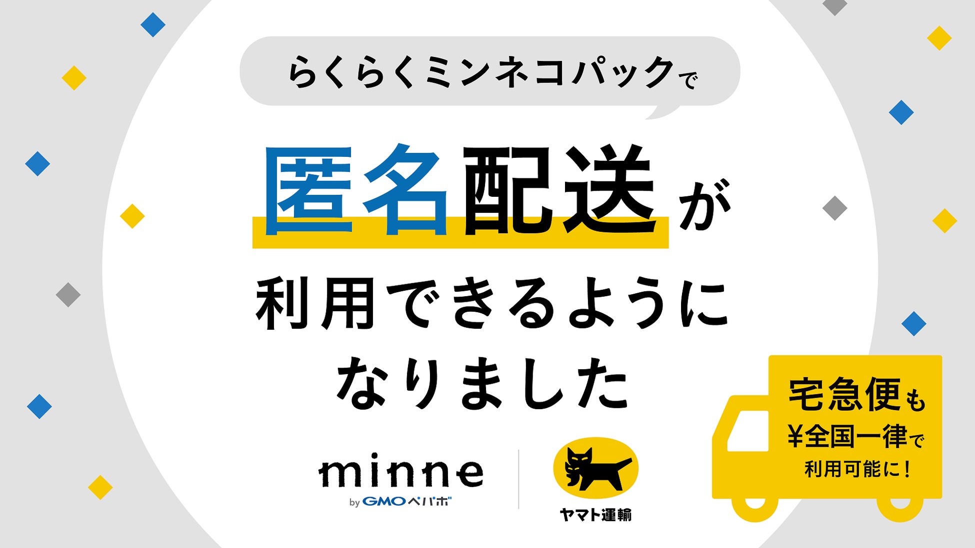 この度「minne byGMOペパボ」では、作家・ブランドがこれまで以上に安心して作品を販売できるプラットフォームとなるべく、作家・ブランドから多くの要望が寄せられていた匿名配送に対応するなど、『らくらくミンネコパック』の内容を拡充することといたしました。