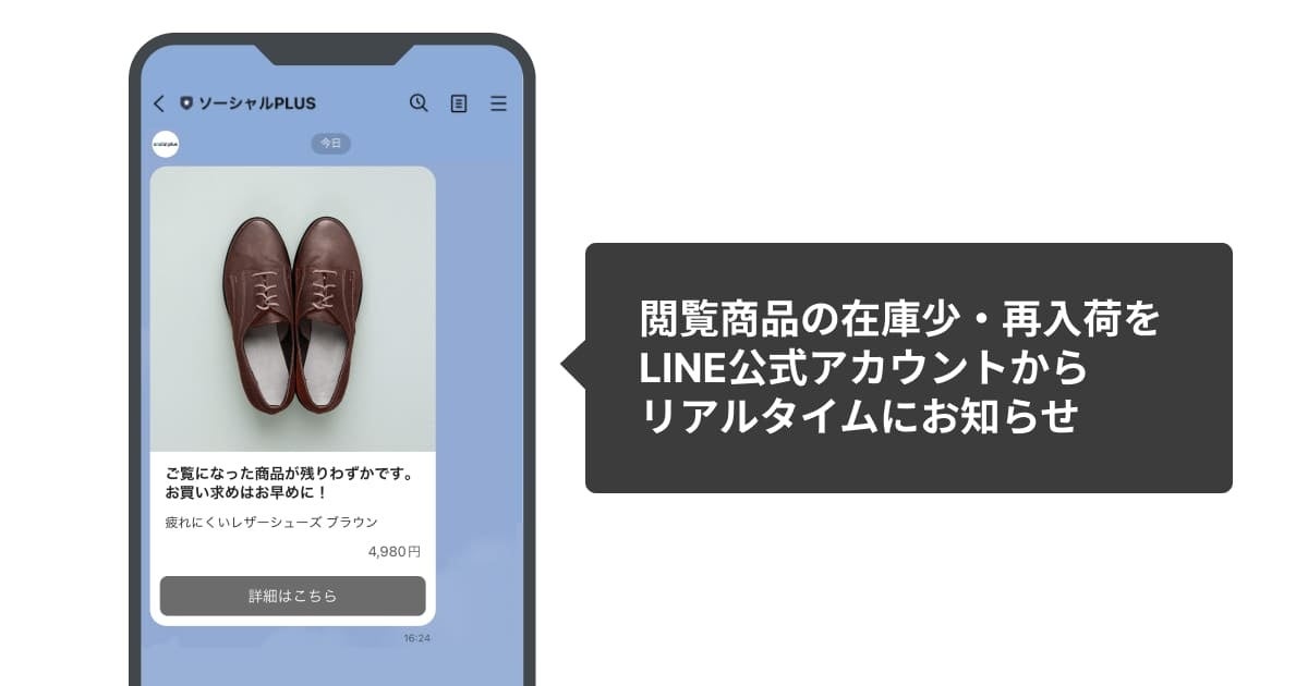 2023年3月29日、株式会社ソーシャルPLUS(所在地:東京都文京区、代表取締役:岡田 風早)が提供するアプリ「CRM PLUS on LINE」に、閲覧商品の在庫少や再入荷をLINEでリアルタイムに配信する機能を追加しました。