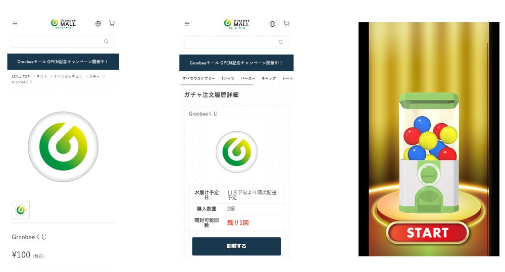 Groobeeをご利用中の企業やアーティスト様は、ご自身の公式ECサイト上にシームレスにオンラインガチャを導入することができ、限定アイテムやコレクティブルなグッズ販売時に最適な演出をすることが可能になります。