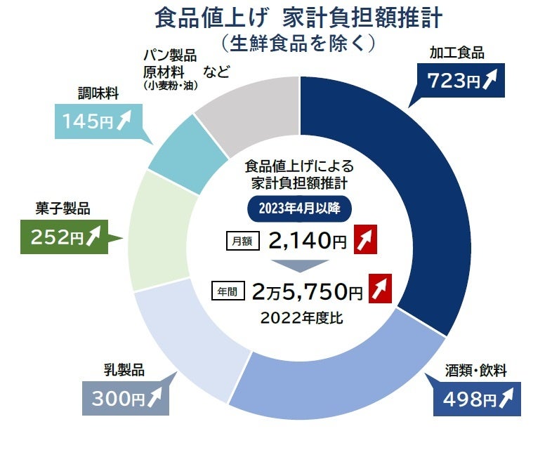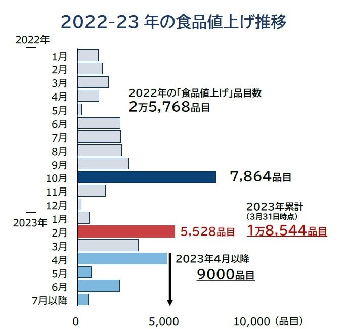 - 2023年通年では値上げ累計2万品目超え予想 年後半にかけて家計負担さらに重く