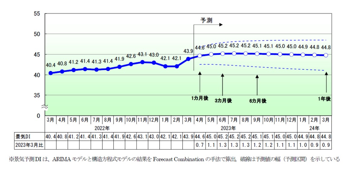 2023年3月の景気DIは前月比1.8ポイント増の43.9となり、4カ月ぶりに改善した。