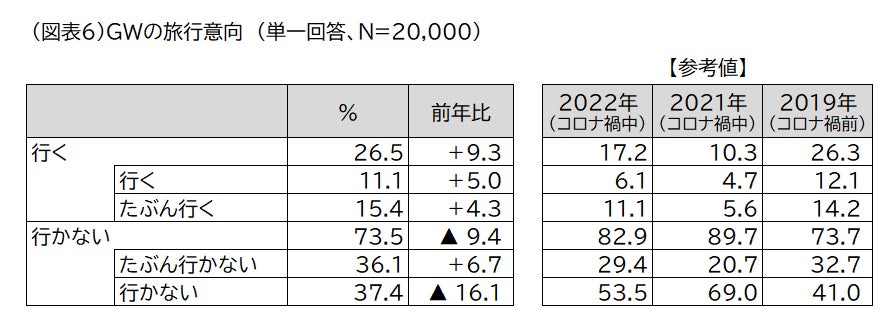 調 査 内 容: 2023年4月25日~5月5日に実施する1泊以上の旅行