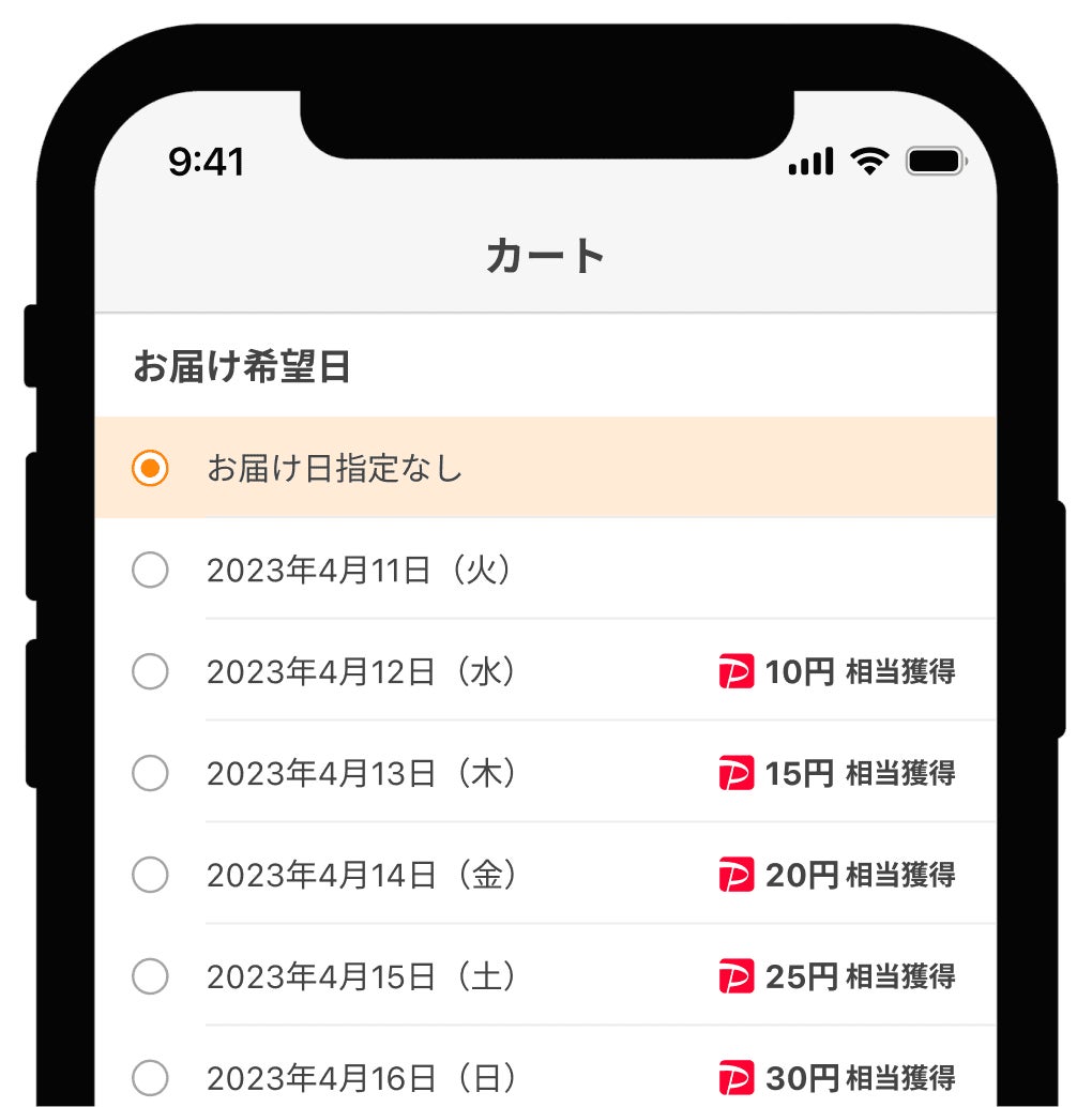 現在「Yahoo!ショッピング」全体の注文のうち約8割が「お届け日指定」のない注文で、お届け日指定がない場合、原則各ストアが設定する最短の日程で商品を出荷しています。今回提供を開始した「おトク指定便」は、すぐ受け取る必要がない商品の注文時にユーザーが「おトク指定便」を選択することで後日「PayPayポイント」を受け取れる仕組みで、出荷・配送業務の分散を図るものです。ユーザーはニーズに応じておトクな配送方法を選択でき、ストアや配送業者はセール期間などの出荷・配送作業負荷の分散・軽減が期待できる、“三方よし”のサービスを目指します。今回の本格展開では、出店ストア側は任意で「おトク指定便」の提供有無を設定でき、最短お届け日より余裕のあるお届け日指定(最大14日後)に対して、ストアが任意で1~100円相当の付与ポイントの設定が可能です。