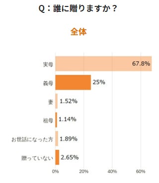 続いて、母の日ギフトは誰に贈るのか、という点から見ていきます。