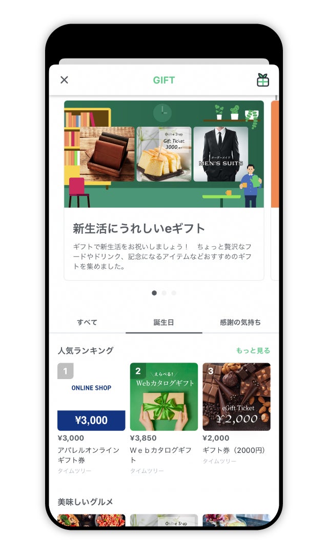生活のさまざまなシーンで生まれる「ありがとう」「おめでとう」「ごめんね」「お疲れさま」などの気持ちをギフトで贈れます。