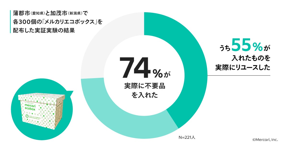 株式会社メルカリ(以下、メルカリ)は、2023年4月26日(水)より、日本財団との連携のもと、愛媛県および岡山市(岡山県)と共同で、市民のみなさまのリユース意識の定着とサステナブルな行動変容を促すため、家庭内で不要になってしまったものを分別しておく「メルカリエコボックス」1万個と「メルカリ」の発送に使える梱包資材2万個を両自治体内で配布する実証実験を開始することをお知らせいたします。